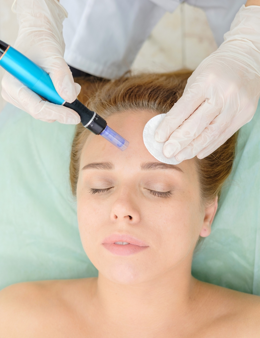 Deretter utfører behandleren microneedling med tilpasset dybde.